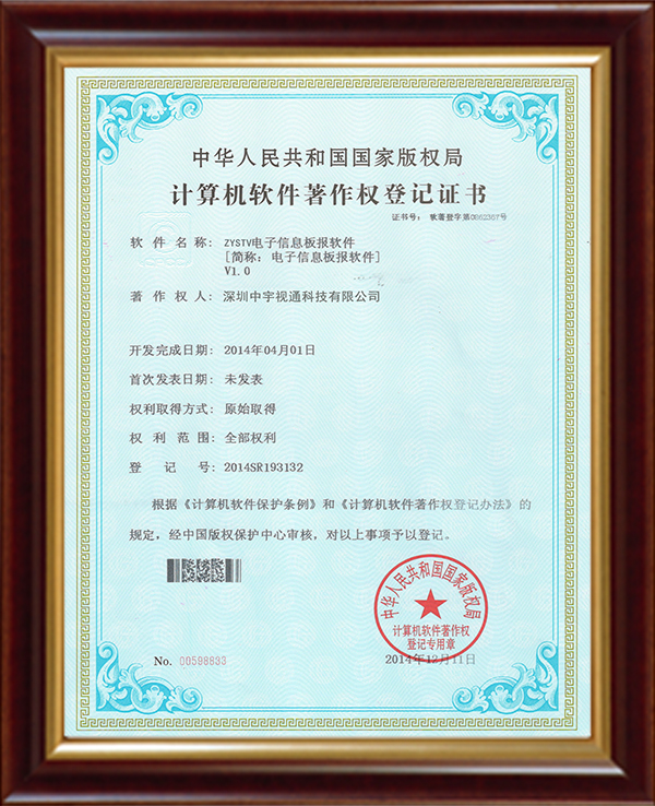 無(wú)縫拼接顯示器專(zhuān)利證書(shū)